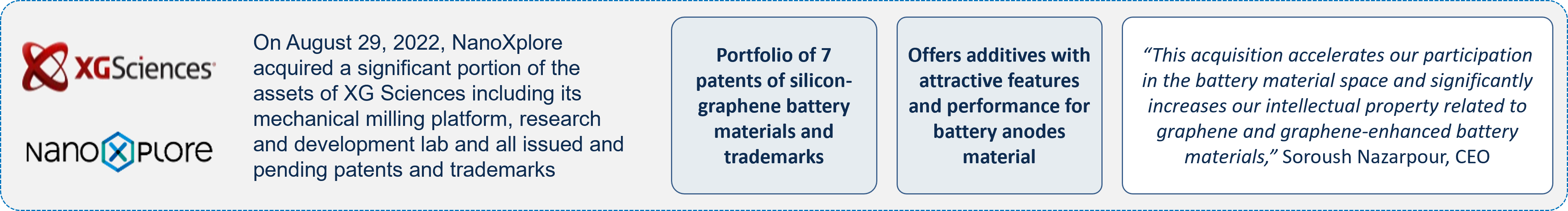 Silicon-Graphene Patent Portfolio Further Bolstered by the Acquisition of XG Sciences Inc. (“XG Sciences”) in August 2022